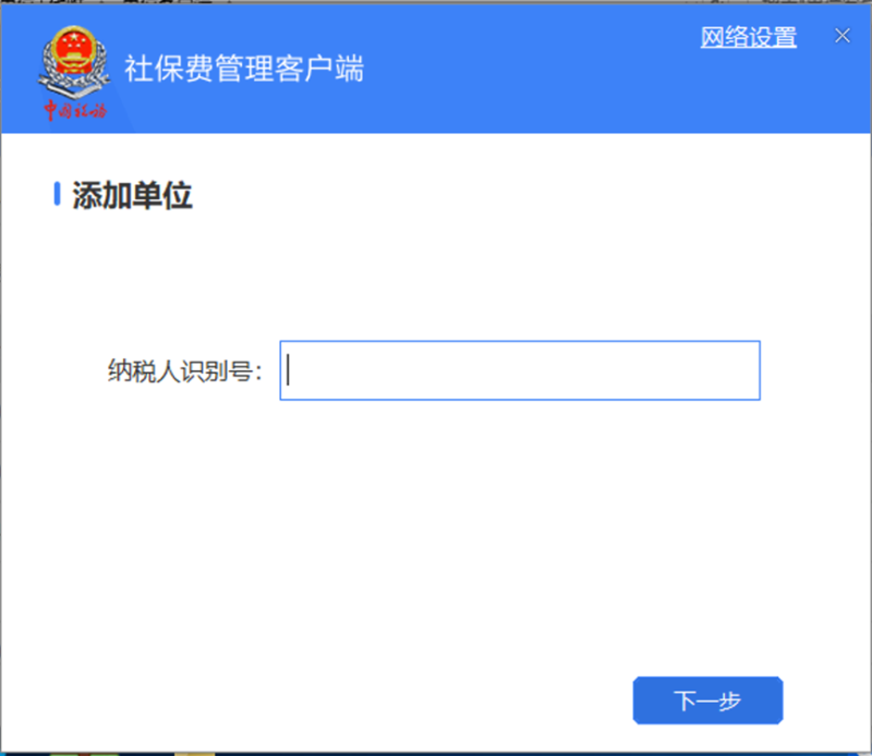 确认地区后,进入单位管理界面,可点击界面中的【添加】按钮进入添加单位信息界面中。填写正确的单位纳税人识别号,点击【下一步】按钮。