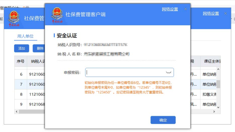 双击已添加的单位记录,在弹出的对话框内输入密码后(初始密码见说明),点击【确定】。首次登录客户端后,请及时修改初始密码并妥善管理。