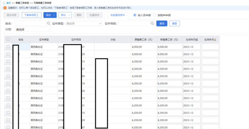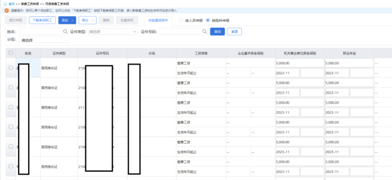 1、按人员申报缴费工资:适用于正常缴费企业申报缴费工资。