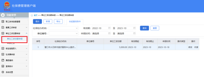(二)【单位工资总额申报】医保涉及双基数的地市需要在申报职工工资后,单独申报职工工资总额。