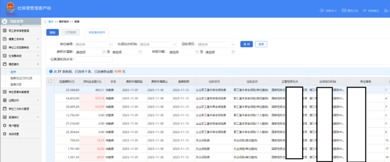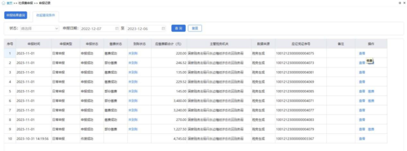 (三)【日常申报】进入该操作模块后,系统会自动带出未申报信息,选择需要申报的费款所属期,勾选后点击【提交申报】,系统自动跳转至【申报缴费查询】界面。